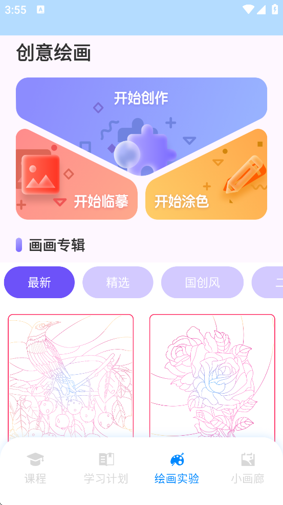 全能画图板app安卓版下载安装是一款绘画工具软件,软件内为用户提供在线学习课程,同时软件内为用户提供大量的美术作品,用户可以通过软件进行绘画进修学习,更多惊喜等你来发现,如此实用的绘画工具软件,你还等什么?感兴趣的小伙伴快快下载前来体验吧!
