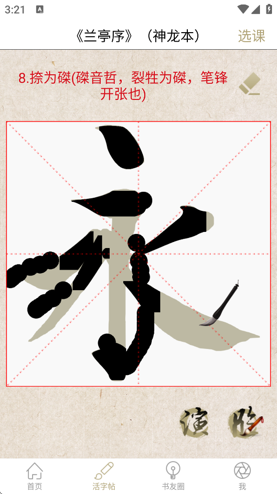 2、提供动态描红功能,系统可智能引导笔画顺序与运笔轨迹,支持调节临摹速度和选择纸张背景,帮助用户掌握字形结构与书写节奏。