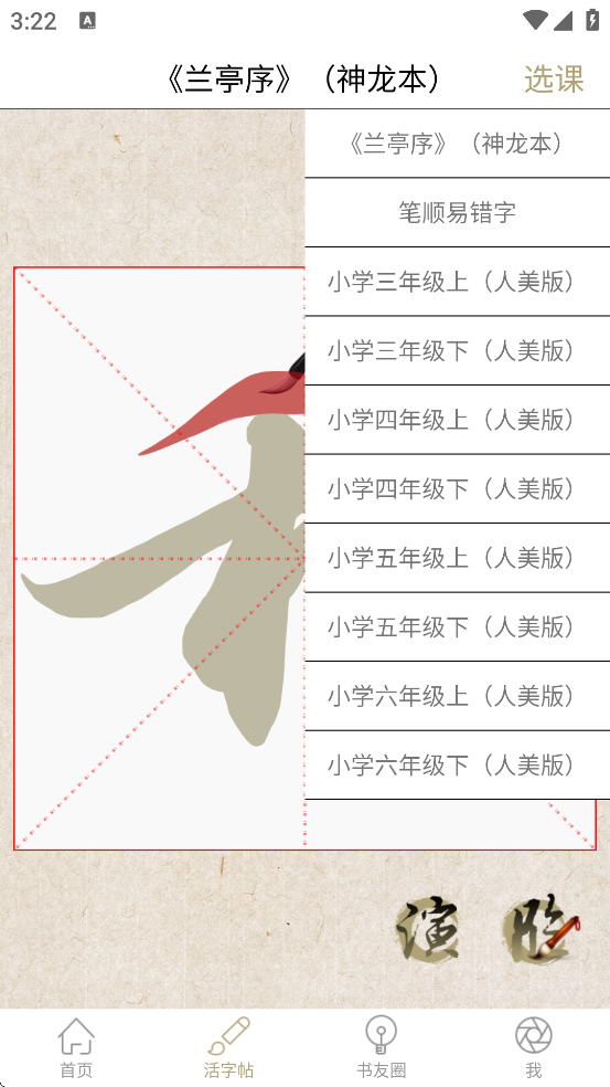 点击“活字帖”,选择目标字或整篇文本进行描红练习。