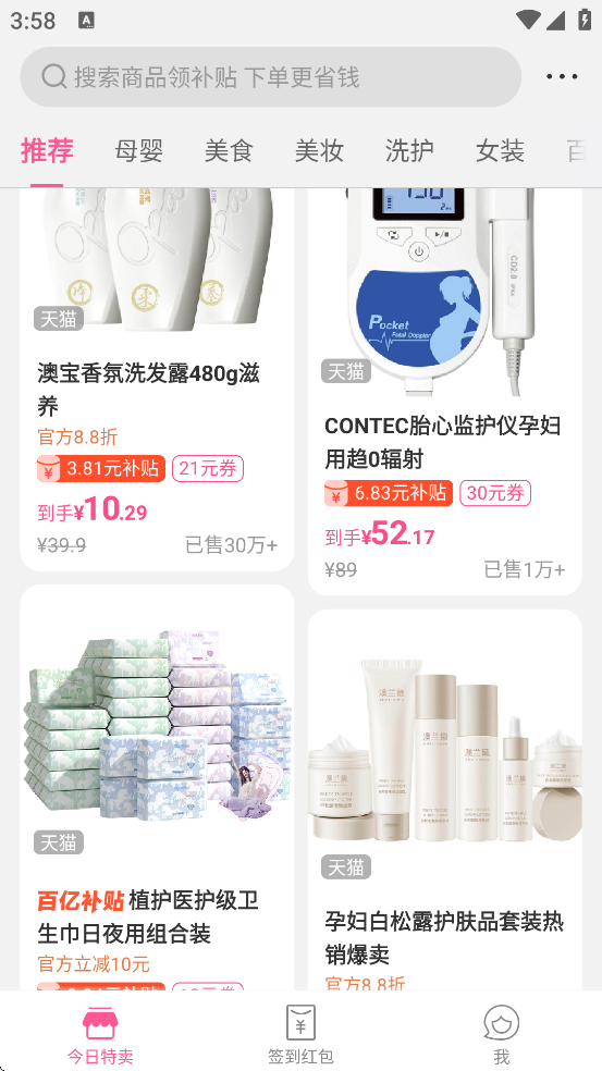 4、全网优惠券整合:支持复制标题查券、一键领券,集成海量淘宝优惠资源,提升省钱效率。