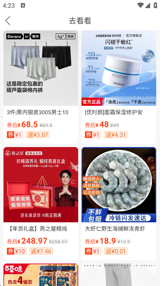 4、提供大量无门槛使用的优惠券,部分商品券后仅需1元且仍享包邮,真正实现“低价+返利”双重省钱。