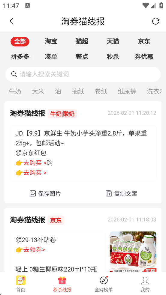 3、优惠券智能查询:支持复制淘宝、天猫等商品标题后自动识别并推荐可用大额优惠券,实现先领券再下单,部分商品可享1-5折超低券后价。