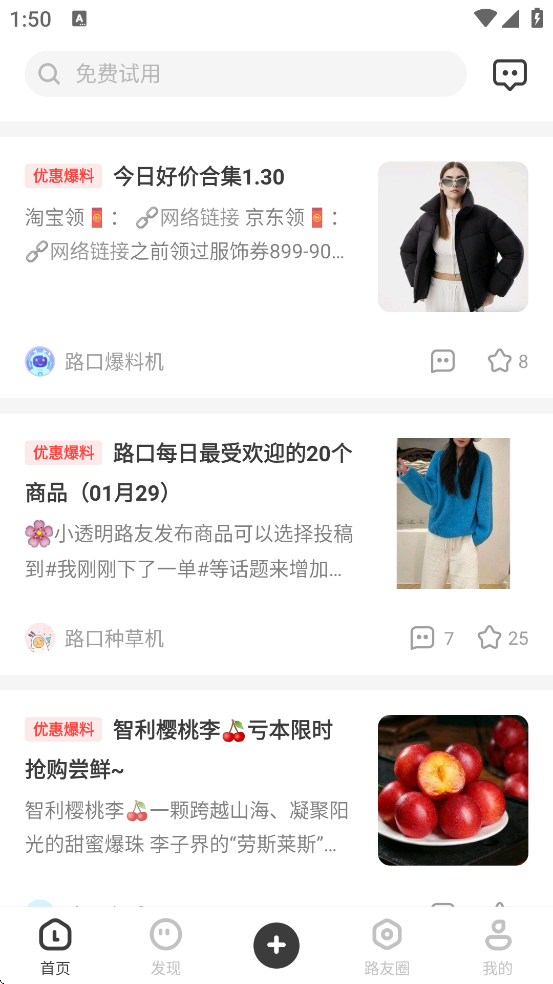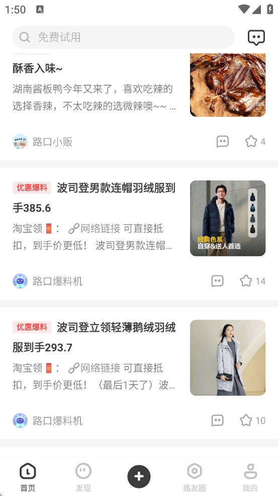5、每天有百万“路友”主动搜索并分享全网最低价商品信息,帮助用户在不同商家间进行实时比价,避免买贵。
