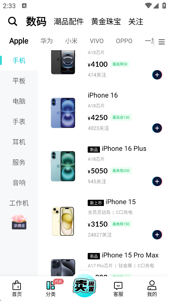 3、实时更新华强北批发价及京东、天猫等电商平台零售价,覆盖手机、平板、笔记本、智能手表、耳机、无人机等主流数码产品,帮助用户掌握市场行情。