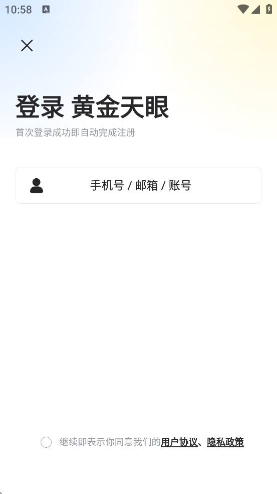 黄金天眼下载安装安卓版是一款金融服务软件,软件内为用户提供黄金实时金价查询,同时软件内为用户提供科学攒金理念,培养用户攒金意识,用户可以通过软件实现金价预警预测,这么好用的金融服务软件,你还等什么?感兴趣的小伙伴快快下载前来使用吧!