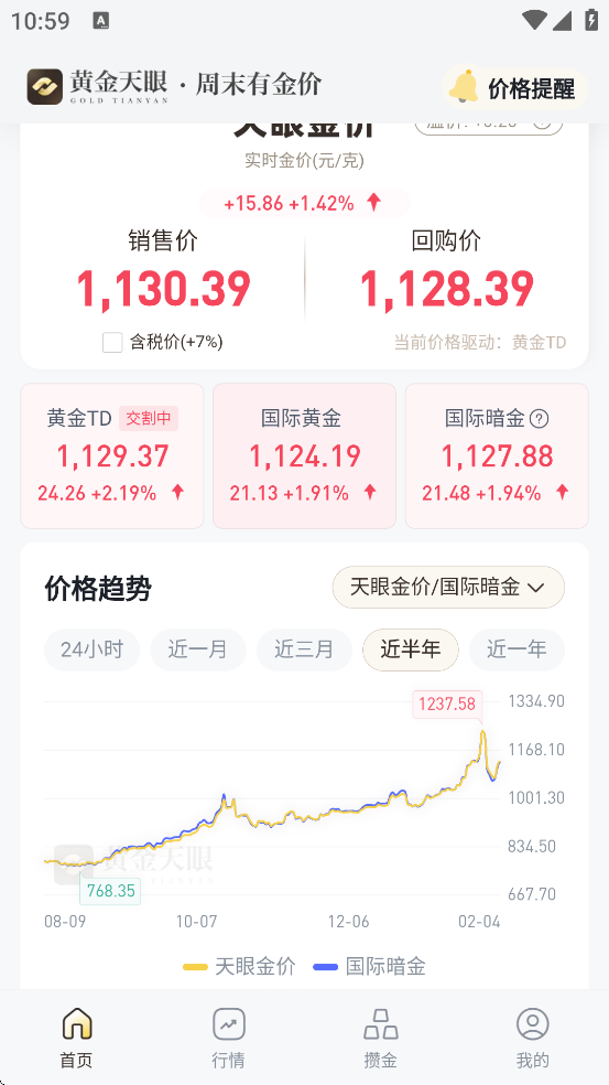 5、实时监控全球主要黄金市场(如上海黄金交易所、伦敦金、纽约金等),周末及节假日不间断更新人民币/克计价的黄金价格,打破传统平台“周末无报价”的局限。