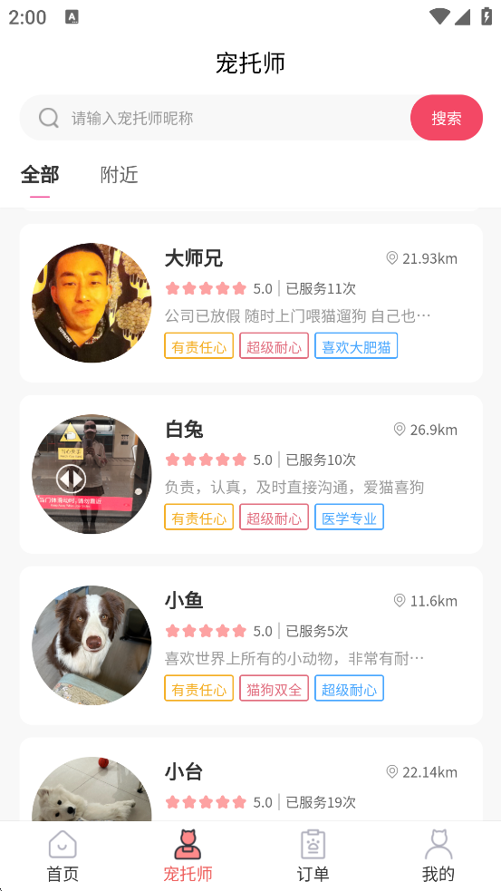 3、用户与宠托师可互相评分,服务质量透明可追溯,平台据此优化匹配与管理,已获得99.2%的用户满意度认证。