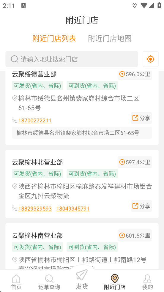 2、网点信息查询:基于定位技术,一键查找附近的服务网点,方便就近寄件或取件。