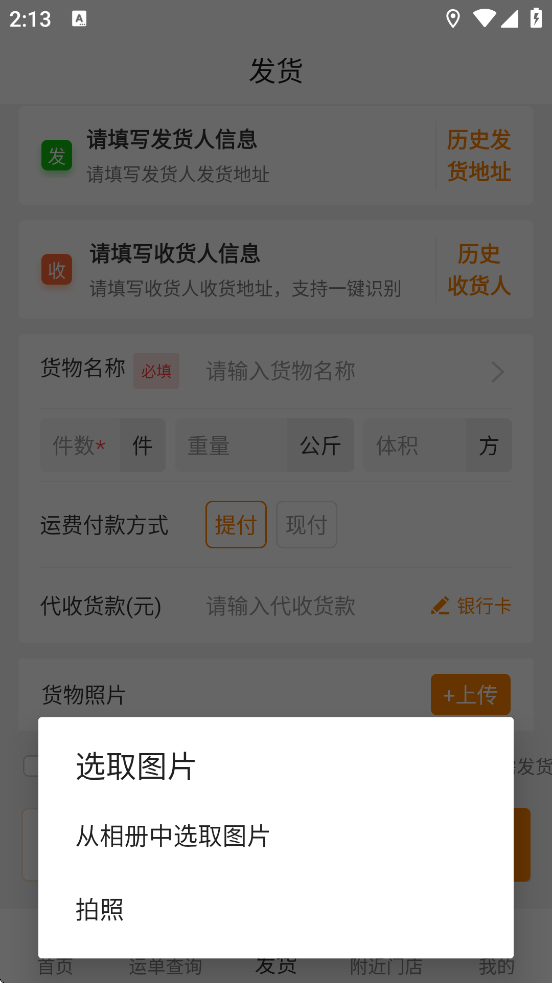 4、在线发货设置:用户可直接在App内填写发货信息,完成线上下单,简化寄件流程。