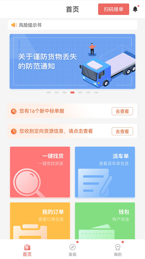 扫码发车:到达装货点后,扫描货主生成的二维码确认装货,系统自动记录起运信息。