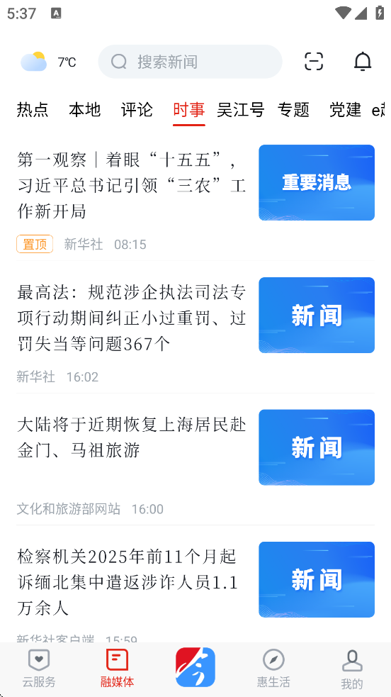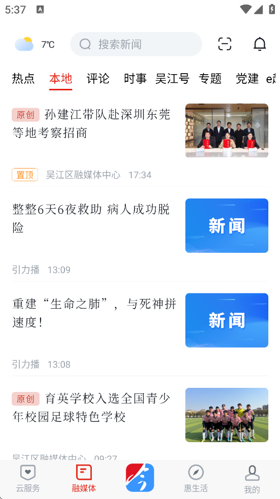 进入“融媒体”页面,查看“本地”标签下的新闻更新。