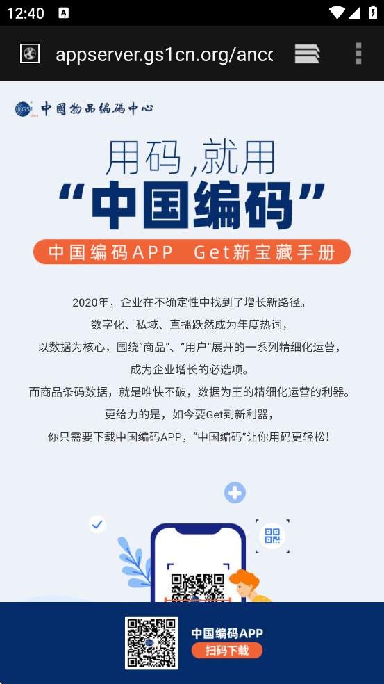 在橘子下载站搜索“中国编码”或扫描官方二维码,下载并安装由中国物品编码中心推出的官方客户端。