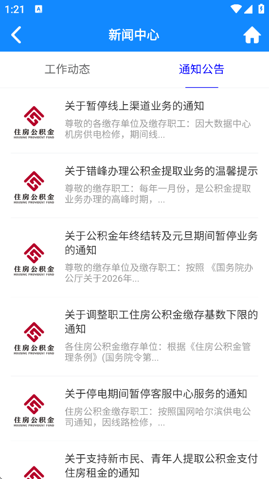 3、及时推送住房公积金最新政策调整、通知公告和办事指南,确保用户掌握第一手动态。