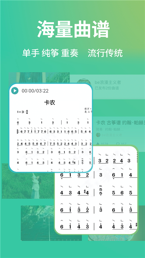 古筝世界是一款专为古筝爱好者打造的一站式学习与演奏辅助APP,适用于从零基础初学者到进阶演奏者的各类用户。它拥有海量高清曲谱资源,涵盖传统名曲、考级曲目、影视音乐、流行歌曲及时下热门新歌,并支持PDF下载与离线使用,满足日常练习、演出准备和视频直播等多种场景需求。软件提供自动滚动走谱、节拍器、调音器、伴奏匹配和指法标注等实用功能,让练习更高效流畅;同时内置录音与回放功能,帮助用户自我纠正演奏细节。用户还可将喜爱的曲谱收藏下载,横屏模式下轻松练琴,无需频繁翻页。此外,APP还构建了琴友互动社区,支持用户上传分享原创或编配曲谱,与全国古筝爱好者交流心得,真正实现学练演一体。值得一提的是,其动态滚谱和多版本编配(不同难度/风格)设计,极大提升了实用性,尤其适合想快速上手新曲目的用户。