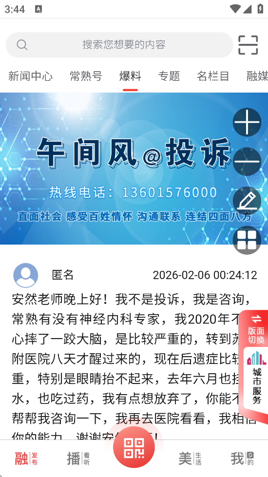 3、集成“午间风爆料”“12345投诉”“媒体投诉”等多种公众参与方式,拓宽民意表达路径。