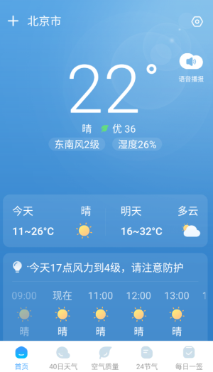 6、支持真人语音播报天气,解放双眼;即时推送强对流、寒潮、台风等9类气象灾害预警,提前1.5小时通知,保障出行安全。