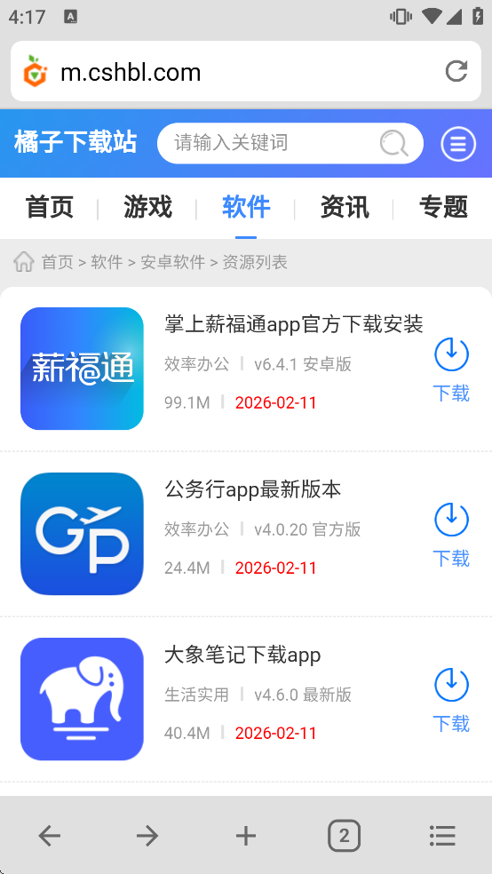 1、在橘子下载站搜索B浏览器正版资源点击下载。
