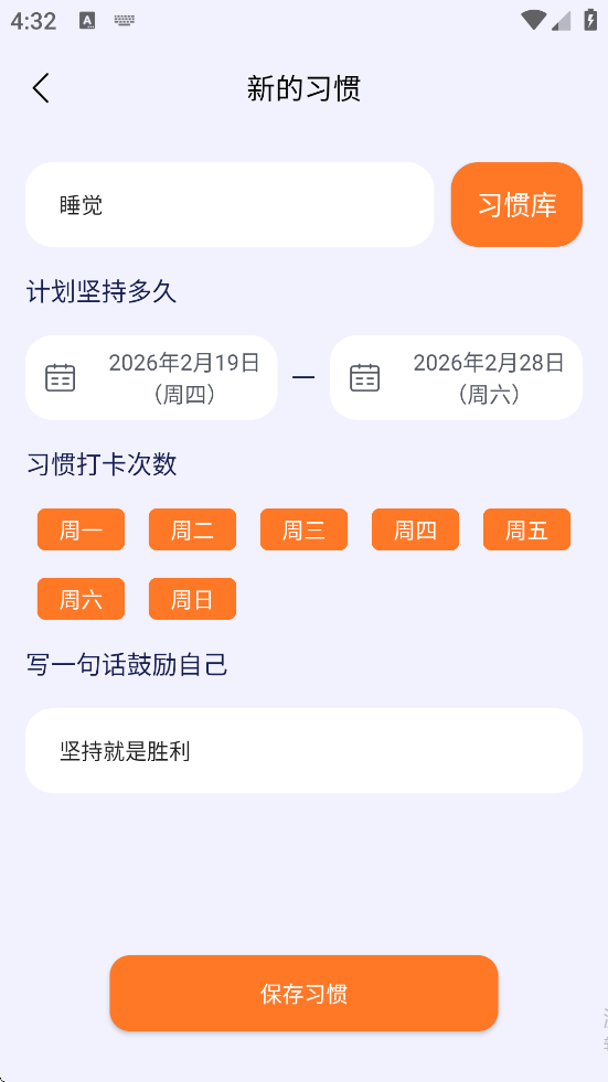 3、用户可设定个性化习惯目标(如早起、运动、阅读),通过每日签到打卡形成正向反馈,配合智能提醒功能提升坚持率。
