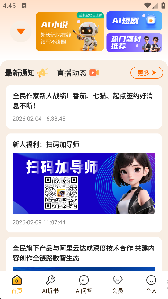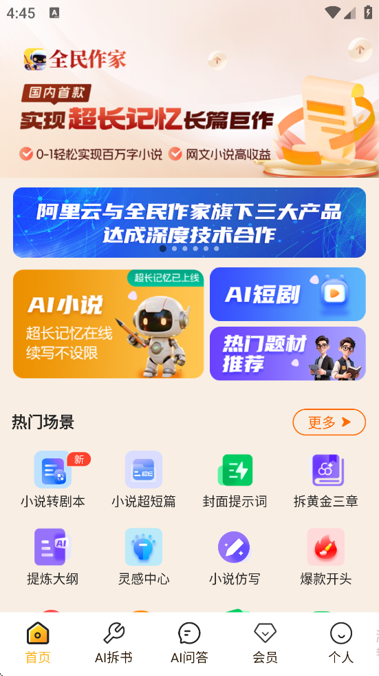 全民作家是一款以AI技术为核心的小说创作应用,秉持“人人皆可为作家”的理念,致力于降低创作门槛,让每位用户都能轻松实现写作梦想。它提供从灵感构思、大纲生成、角色设定到正文创作的全流程智能辅助,支持一键生成百万字小说内容,并可自由切换AI生成与手动创作模式。平台内置AI短剧生成、拆书仿写、封面设计等功能,满足多样化创作需求,同时支持多端同步与云端存储,确保创作内容安全不丢失。无论是写作新手还是资深作者,都能在全民作家中找到适合自己的创作节奏,快速产出高质量作品。