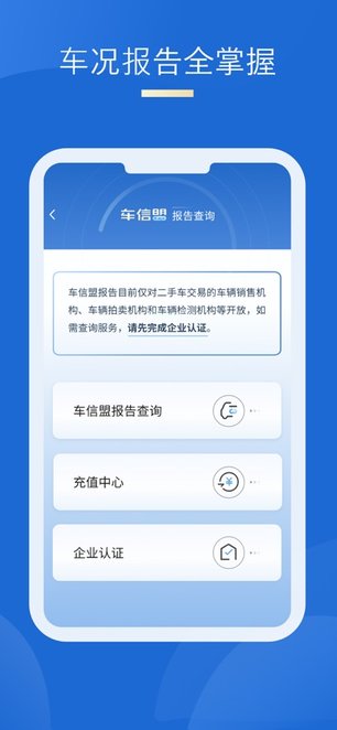 车信盟是一款全国首个覆盖汽车全生命周期的O2O信息服务平台,致力于为车主和汽车流通行业提供融合、透明、便捷的一站式服务。通过大数据与智能化技术,平台整合了车辆从生产、销售、保养、维修、保险理赔到二手车交易、报废拆解等全流程信息,打造权威的车辆信息储存中心。用户可通过APP查询车辆历史记录、维修保养情况、出险信息等关键数据,辅助二手车交易决策,并获取真实车主评价与估值参考。