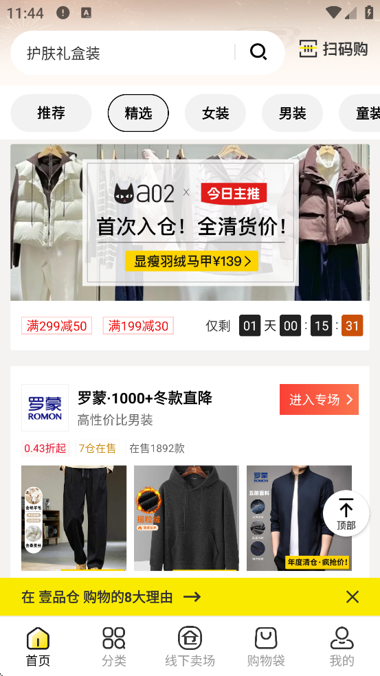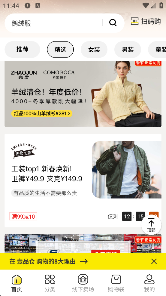 壹品仓是一款专注于品牌特卖的O2O购物平台,起源于上海,通过与全球3000多个知名品牌直接合作,消除中间环节,为用户提供平均1~3折的超值正品商品。平台涵盖服饰鞋履、家居日用、母婴用品、美妆日化、家电炊具等全品类,实行“线上线下同质同价”模式,用户既可通过APP在线选购,也可前往线下仓储式门店推车购物,享受沉浸式购物体验。壹品仓还推出智能扫码购、直播选品、限时特卖等创新功能,支持一键比价淘宝、天猫等主流平台,确保低价真实可靠。截至2025年,平台已拥有超900万会员,在上海、浙江、江西等地布局多家特卖仓,总面积超10万平方米,打造集购物、咖啡、直播于一体的新型消费空间。