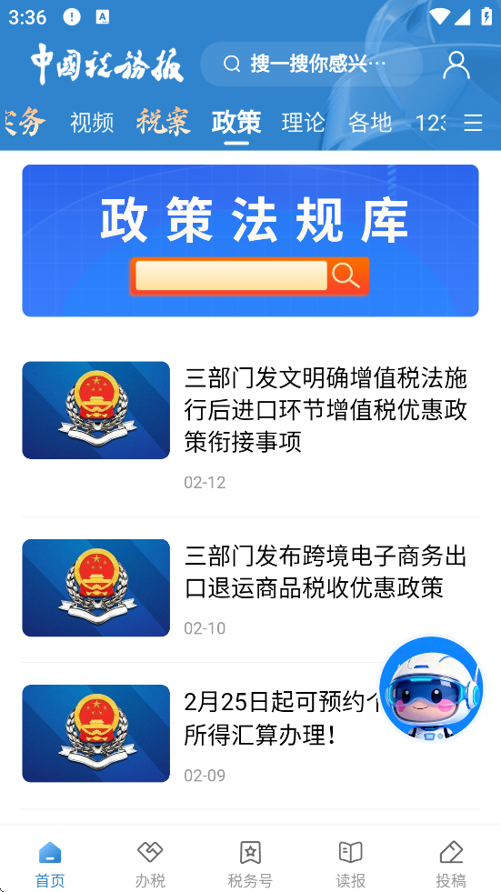 打开App后,在首页顶部的搜索框中输入关键词(如“增值税优惠”“个税专项附加扣除”),系统将自动匹配相关政策文件、解读文章和新闻报道。