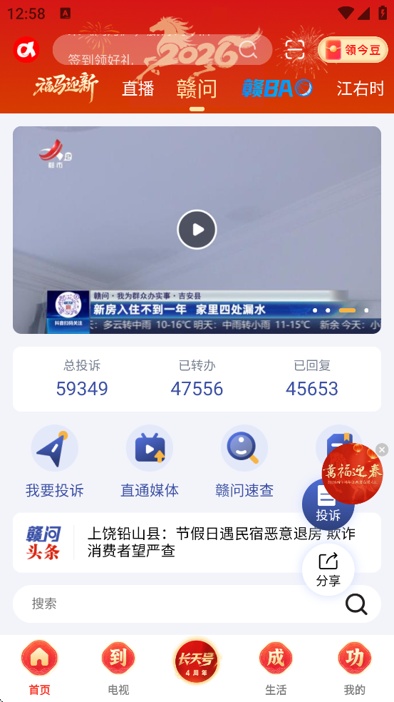 6、支持江西卫视、新闻频道、都市频道、公共农业频道等十余套电视频道7×24小时同步直播,提供近7天节目回看服务,支持倍速播放、进度拖拽与智能续播。