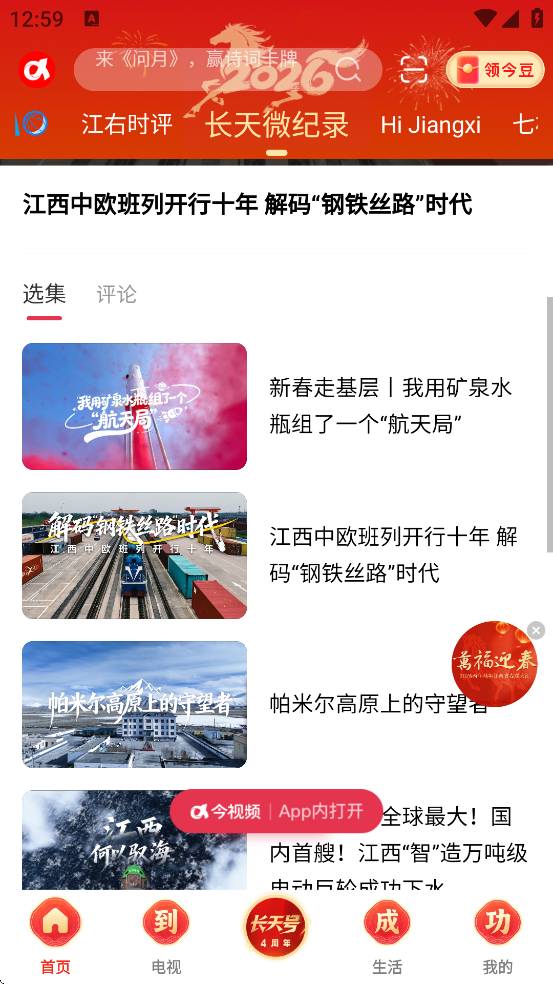 3、突出“赣鄱新闻”“民生现场”“松柏巷里”等本土原创栏目,强化对11个设区市的覆盖,展现各地风土人情与发展动态。