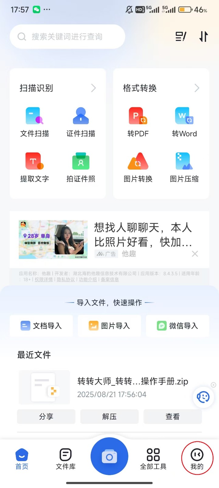 转转大师是一款集文件扫描、文字识别、图片转文字、PDF格式转换、图片格式转换、CAD转换等多功能于一体的办公软件,广泛适用于学习、工作和日常文件处理场景。它支持高清扫描证件、合同等纸质文件并生成PDF,可精准识别图片或文档中的中英文等多语言文字,并导出为Word或Excel格式;同时提供PDF转Word、图片转PDF、视频音频转换、文件压缩、合并拆分等多种格式处理功能,操作简洁高效,支持批量处理与本地转换,保障隐私安全。 该软件已上线安卓与iOS平台,用户可通过应用宝、App Store等渠道下载使用。