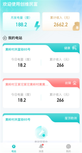 1、全流程数字化管理:从申请、安装到发电、收益、运维,所有环节均可在App内闭环完成,操作高效透明。