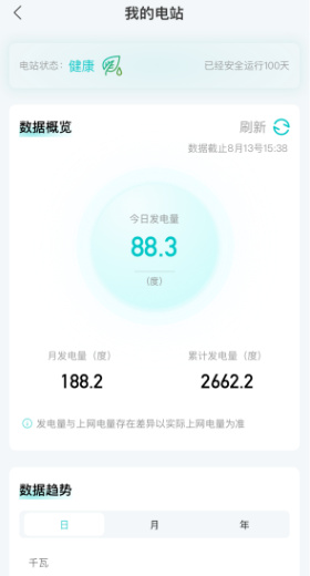 5、数据可视化呈现:发电与收益数据以图表形式展示,界面简洁直观,便于非专业用户理解。