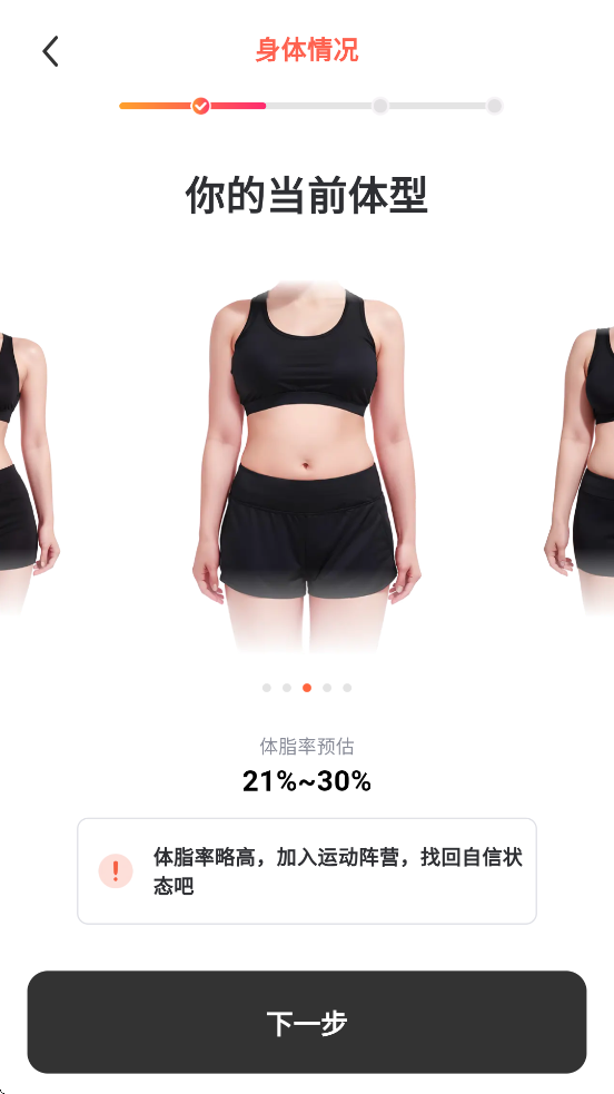进入“体态分析”模块,按提示拍摄正面、侧面站立照片