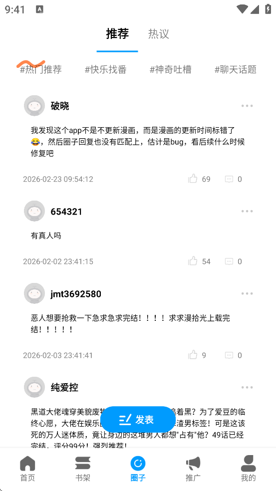 3、不仅能看漫画,还能参与讨论、点赞评论、分享作品,构建属于漫迷的交流空间。