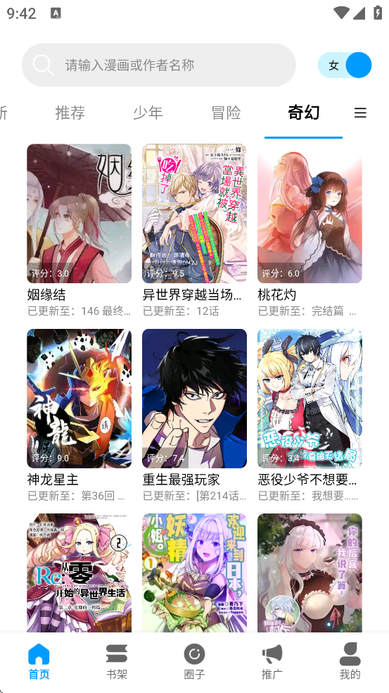 首次使用时会提示选择性别(男/女),系统将据此为你推荐更符合兴趣的漫画内容。