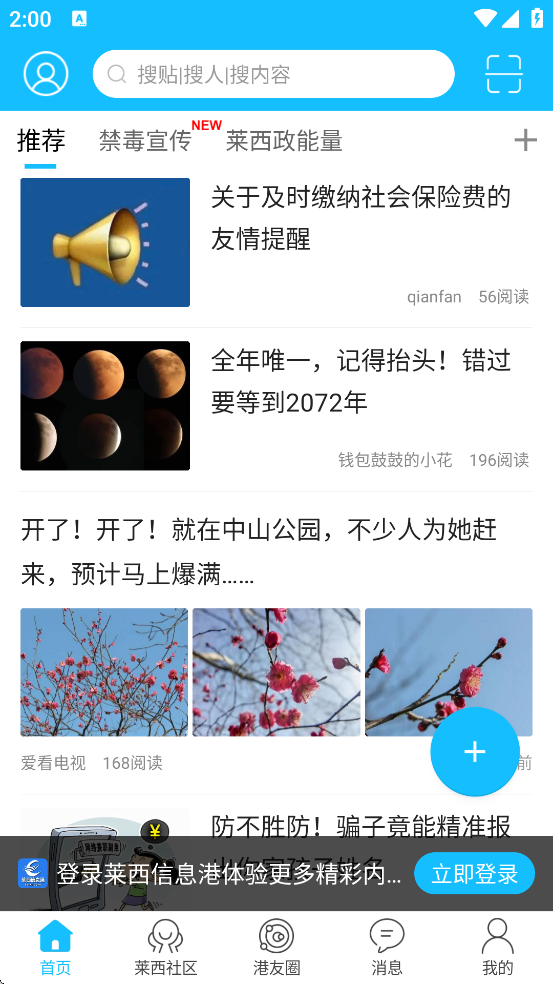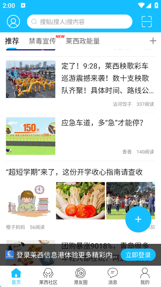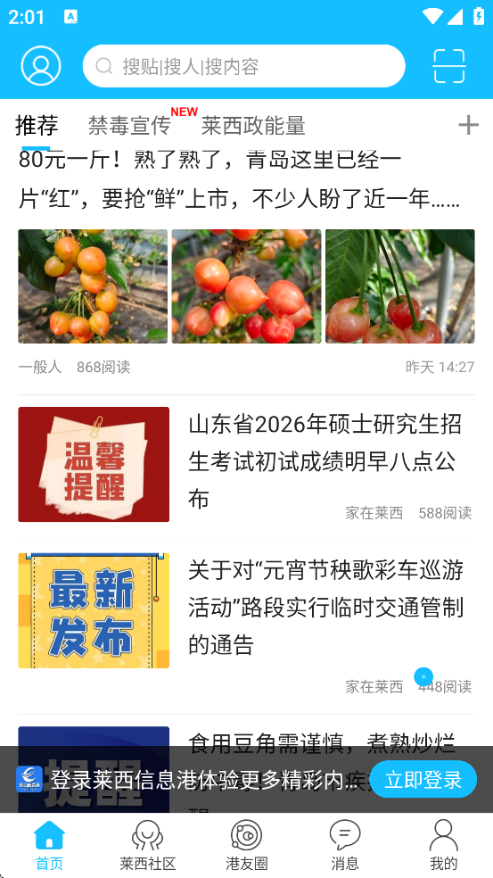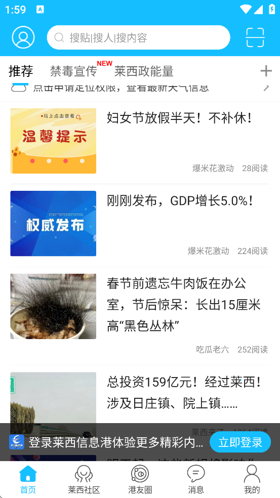 莱西信息港是一款专为莱西本地居民打造的生活消费社交平台,覆盖招聘求职、房产交易、二手物品买卖、家政服务、同城交友等20余项生活场景。用户可通过网站或手机App实时浏览本地新闻动态、查询天气与菜价、参与论坛讨论、发布分类广告,并享受团购优惠、车辆违章查询、大集信息提醒等便民服务。平台还设有“港友圈”功能,支持用户发现身边兴趣相投的人,建立社交连接,打造线上线下融合的本地生活圈。目前提供安卓和iOS客户端,支持微信公众号绑定,实现消息同步与快速登录,是莱西及周边地区居民获取信息、交流互动的重要渠道。