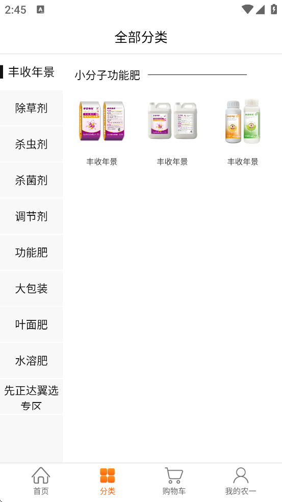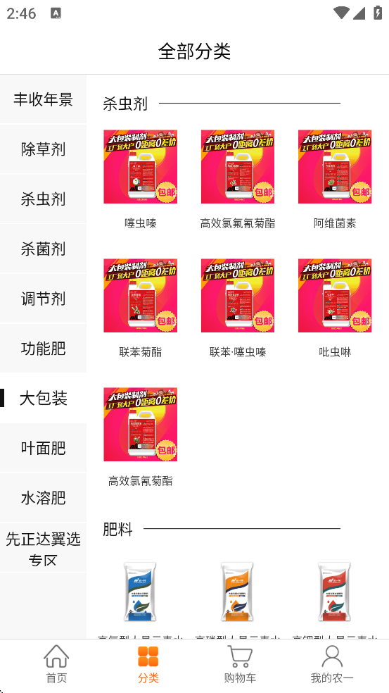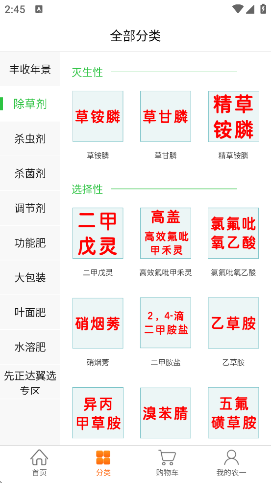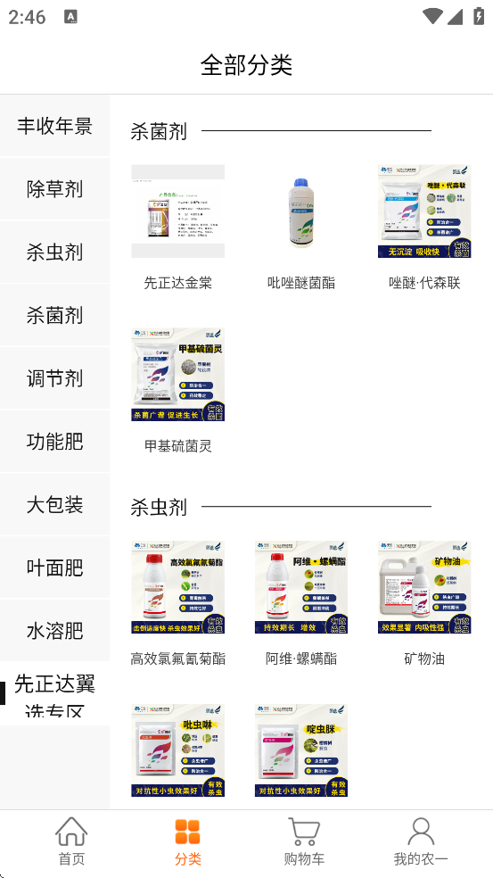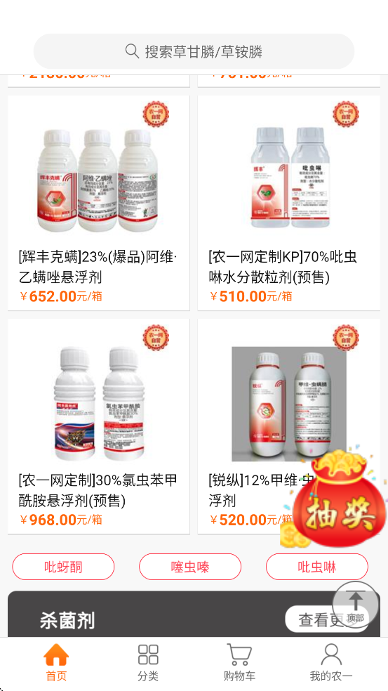 分类浏览:点击“全部分类”,按杀虫剂、杀菌剂、除草剂、肥料等品类查找。