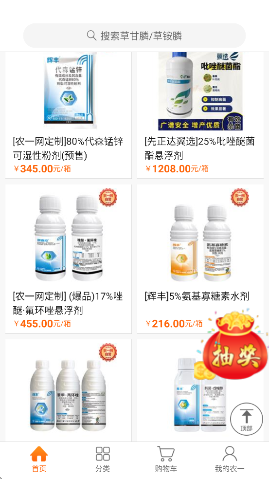 2、提供杀虫剂、杀菌剂、除草剂、植物生长调节剂、水溶肥、聚谷氨酸肥等全品类农资产品的在线查询、比价与下单服务。