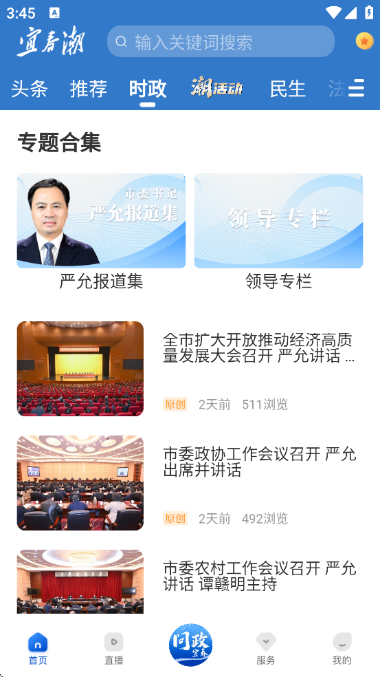 2、实时推送本地及国内外新闻,涵盖时政、民生、文旅、视频等多个栏目。