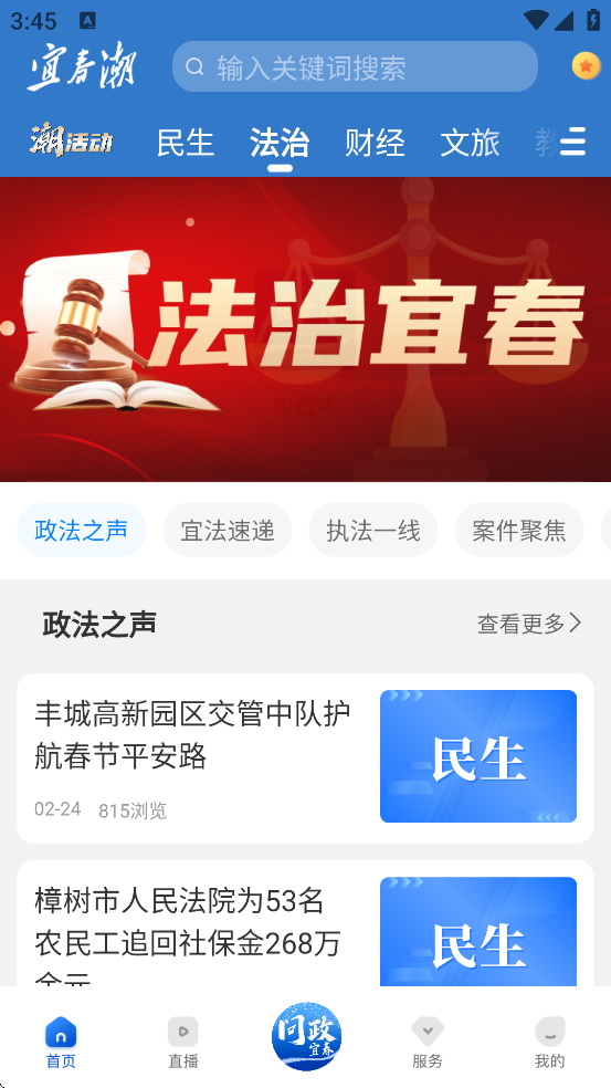 点击底部【视听】或首页【直播】入口,可观看宜春广播电视台实时直播。