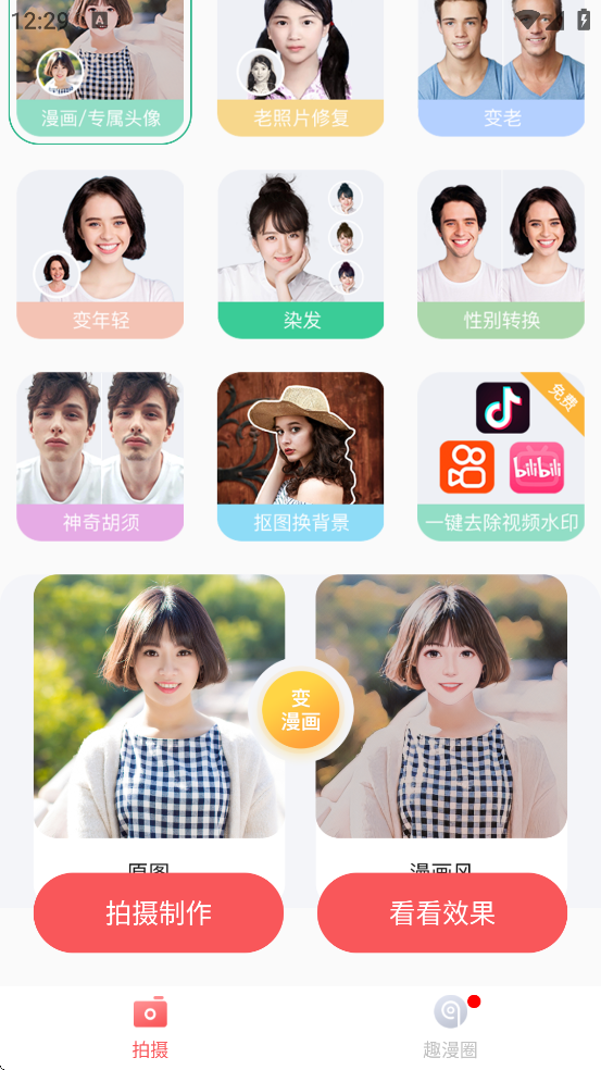 趣漫相机是一款集创意与趣味于一体的AI图像处理应用,能够通过先进的图像算法将用户的照片一键转换为多种漫画风格,如新海诚、宫崎骏、素描、油画、抽象风等,瞬间打造专属的艺术化形象。它不仅支持真人秒变漫画角色,还提供照片修复、变老变年轻、性别转换、在线染发等魔幻功能,满足个性化娱乐需求。软件内置丰富的滤镜、贴纸、文字和DIY场景,用户可自由编辑照片,添加趣味元素,并实时预览效果,操作简单流畅,适合各年龄段使用。制作完成的作品可直接保存至相册或一键分享至社交平台,轻松玩转朋友圈与短视频社交。