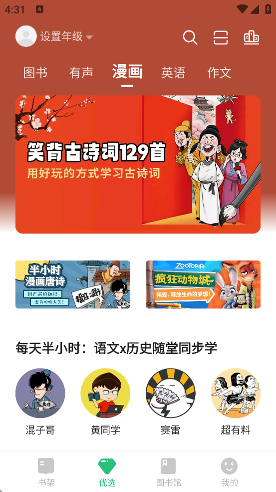 3、基于北师大中文分级阅读标准,通过能力测评精准匹配适合孩子年龄和阅读水平的书籍,实现从3岁启蒙到高中阶段的全周期覆盖。