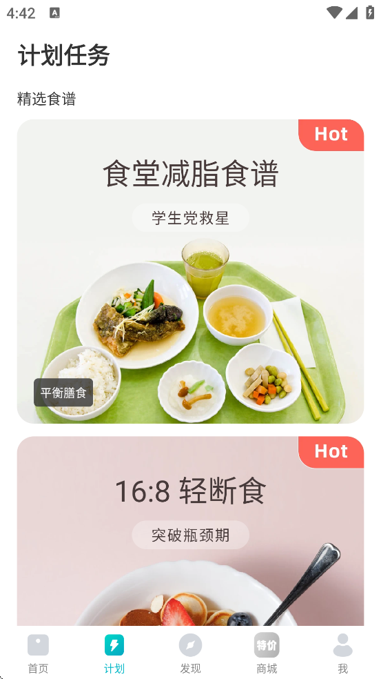 2、内置30万+食物热量数据库,支持拍照识热量、三餐记录与营养分析;提供低碳饮食、慢病管理、轻断食等多种精选食谱。