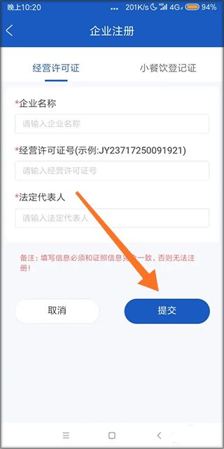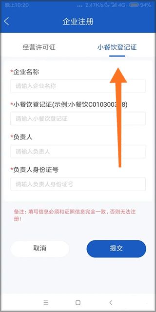 1、界面清晰,功能模块化(工作台、数据、管理、个人),企业使用食品经营许可证号即可快速注册登录。