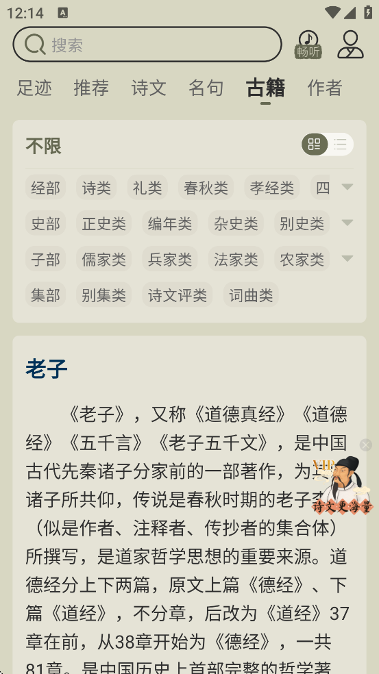 古诗文网是一款专注于古诗文学习、鉴赏与传播的综合性软件,堪称古诗文爱好者的掌上宝库。它收录了从先秦至明清2万+作者的100万+文献资料,涵盖诗词、文赋、曲牌、古籍等各类经典,甚至包含《四库全书》这样的珍贵典籍,资源之丰富、分类之详细,能满足学生、文艺爱好者、学术研究者等不同群体的多元需求。