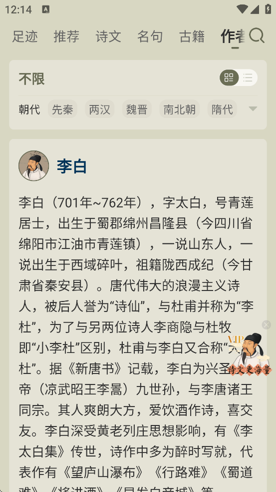 1、安卓端完全免费,无内购门槛,纯粹为文化传播而生,被誉为“古诗文爱好者的净土”。