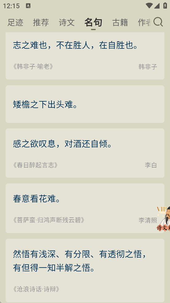 名句:精选千古传诵的经典名句,便于积累与引用。