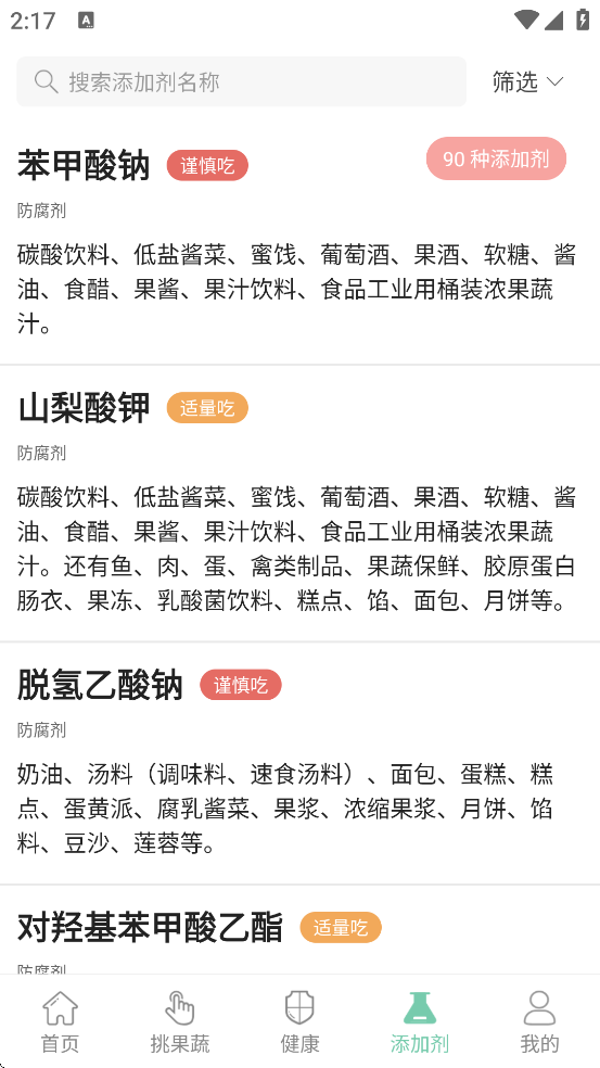 健康以下功能在筛选中增加排序功能,可按含量升序、降序排列。