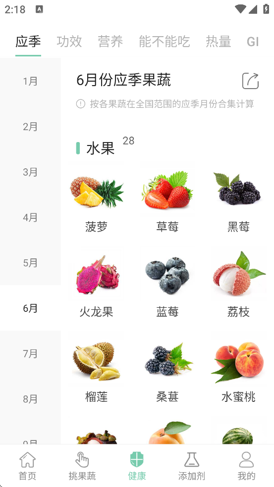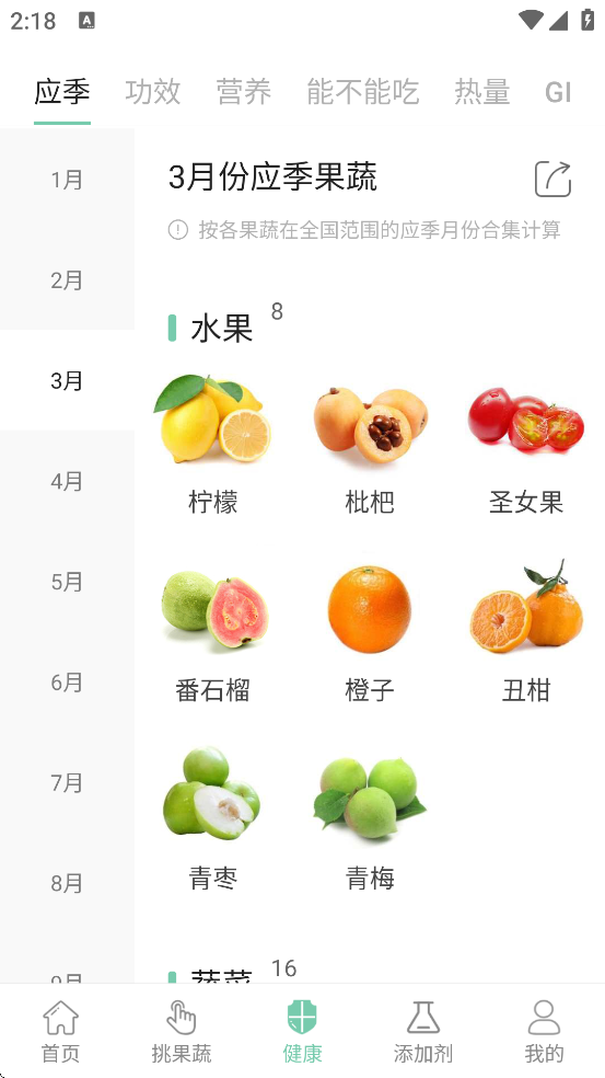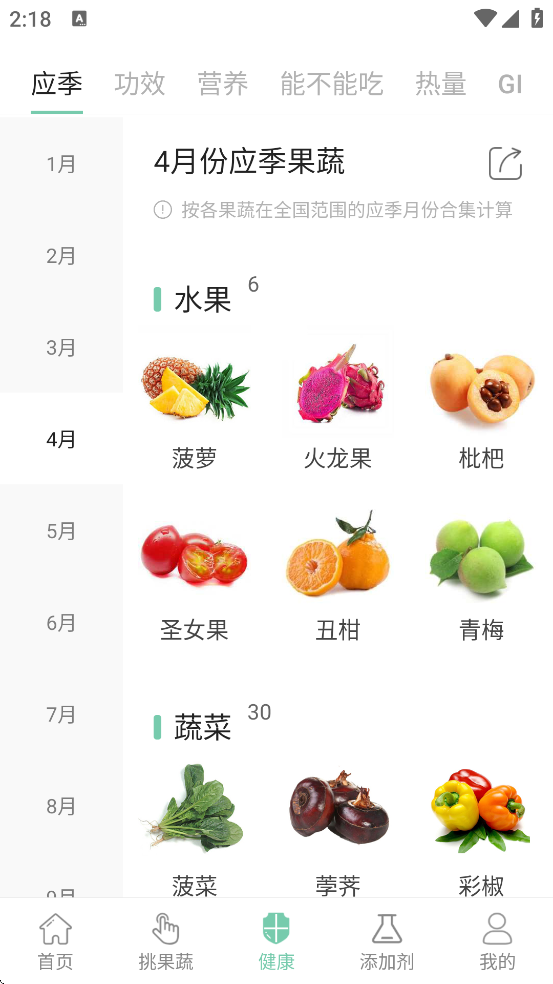 选择当前月份,查看推荐的当季水果蔬菜列表。