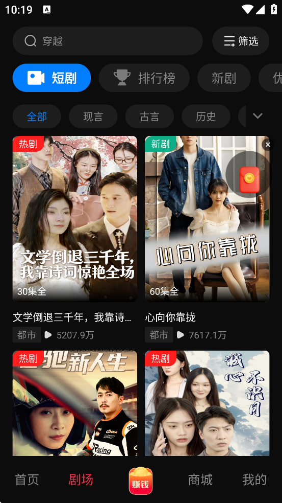 分类浏览:点击“剧场”页面,短剧按“现言”“古言”“重生”“战神”“悬疑”等题材分类呈现,支持九宫格浏览,找剧更高效。