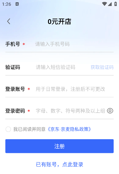 3、点击0元开店。